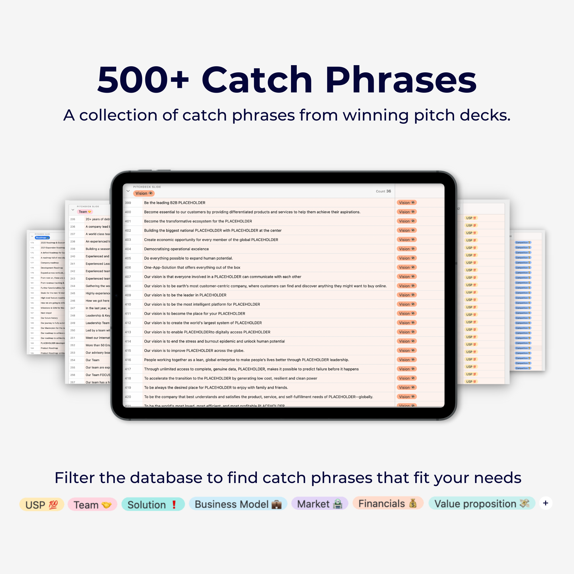 Über 500+ Pitch Deck Catch Phrases